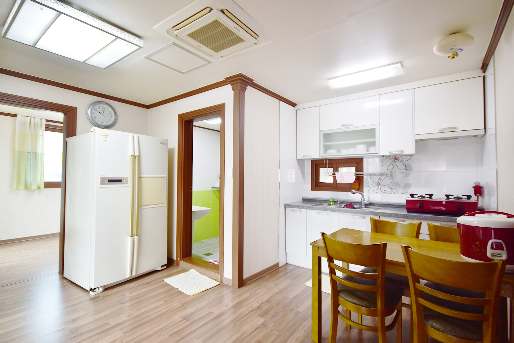 천장형 에어컨, 샤워실(샴프, 린스, 비누, 치약, 수건), 42’TV, 냉장고, 전기압력밥솥, 5인용 식탁, 주방취사도구 일체, 핫플레이트, 화장대, 드라이기, 전자렌지, 6인용 야외용 데크